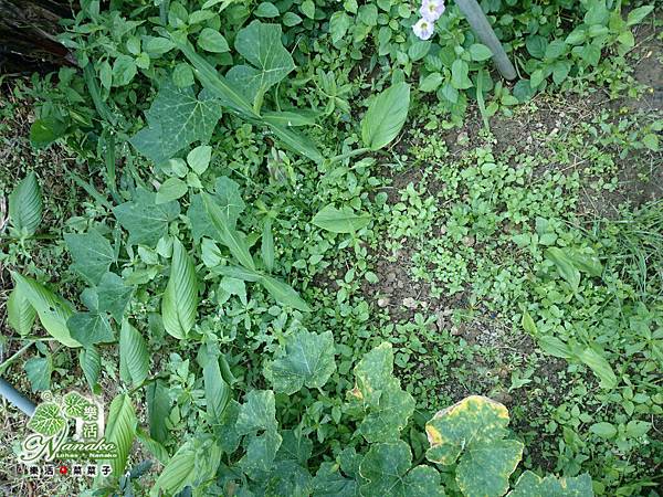 只是直接埋在土裡面的薑黃 ,要記得把一些薑露在土面上 ,冬天的時候他還沒有發芽,上方會長出很多雜草 ,等到穀雨左右 ,可以除草 ,這時就要看土面的薑頭 ,才不會一不小心就把薑長出來的嫩芽給拔掉了 !!